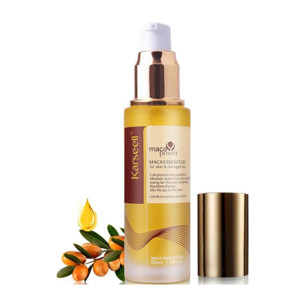 يُعرّف بأنه “ماكا إيسنس” أو “زيت ماكا العطري” — أي يحتوي مستخلص “ماكا” في تركيبته، مع تركيز على إصلاح الشعر التالف وترطيب الجسم.